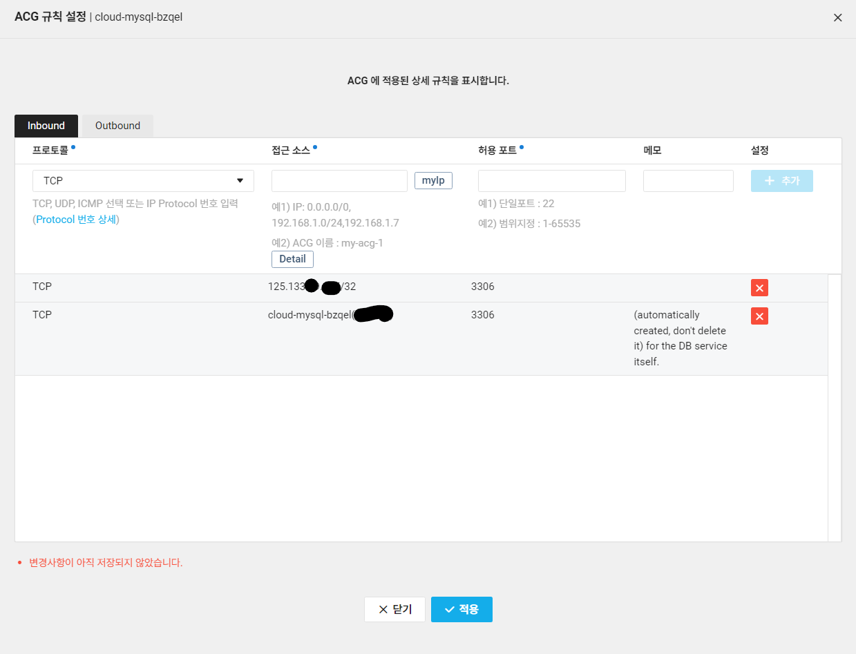 DB서버에 접근할 아이피를 인바운드 규칙에 적어주자 추후에도 설정이 가능하다.