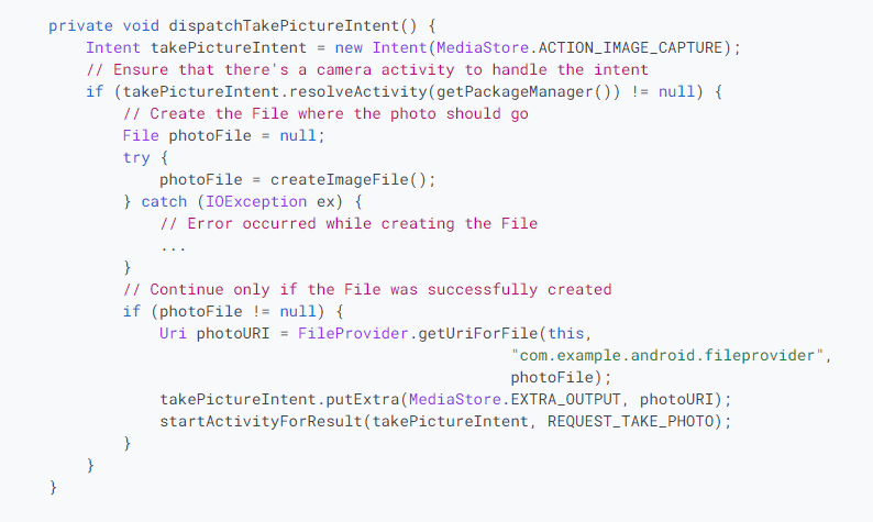 intent.putExtra(MediaStore.EXTRA_OUTPUT, imageUri);